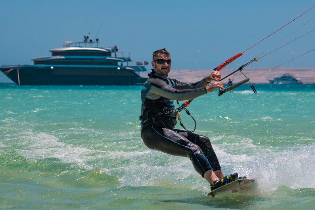 Lunch is served onboard, then more kiting or water activities. Evenings feature delicious dinners, socializing, and relaxation. All cabins have ensuite bathrooms and air conditioning.